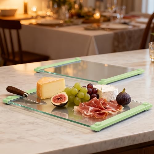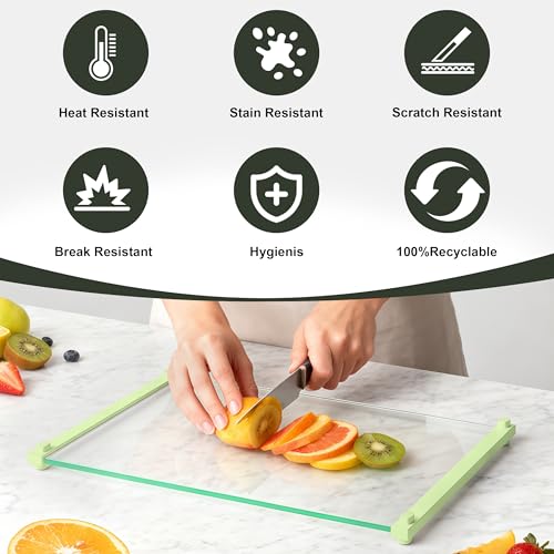 2PCS Glass Cutting Board with Silicone Grip, 80% Stronger Shatter Resistance and Slip Resistance,No Scratches/Microplastic-Free,Dishwasher Safe, Non Toxic Chopping Board for Kitchen (Green)