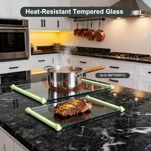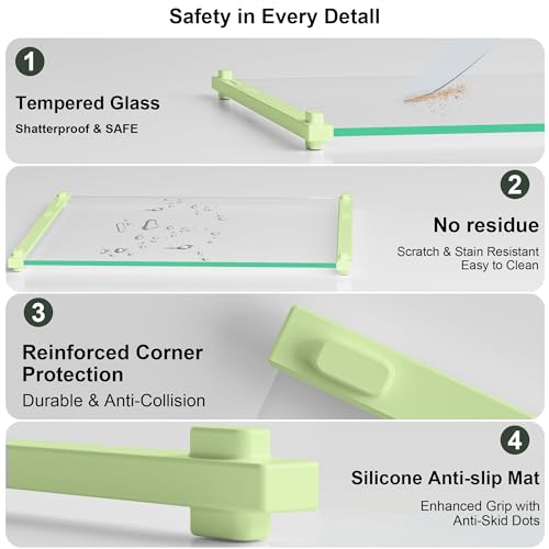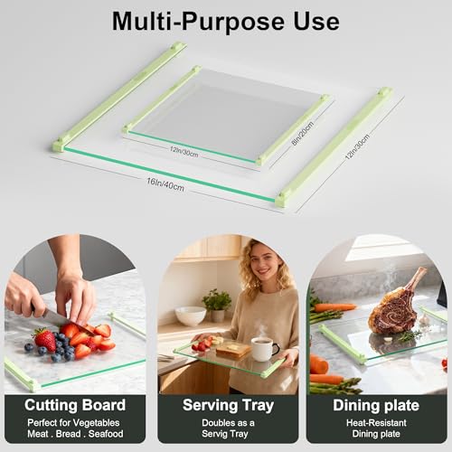 Enhanced Silicone Grip: Building on standard glass cutting boards, our upgraded silicone grip increases shatter resistance and slip resistance by 80%, effectively preventing fragile edges and Prevent slipping during cleaning