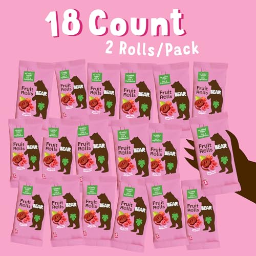BEAR Real Fruit Snack Rolls – Gluten Free, Vegan, and Non-GMO – Raspberry – 36 Rolls, Healthy School And Lunch Snacks For Kids And Adults, 0.7 Ounce (Pack of 18)