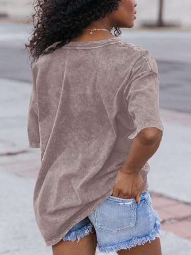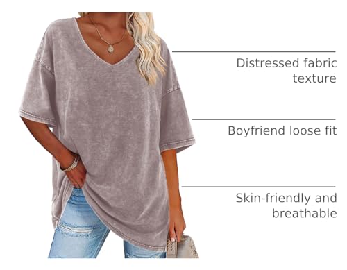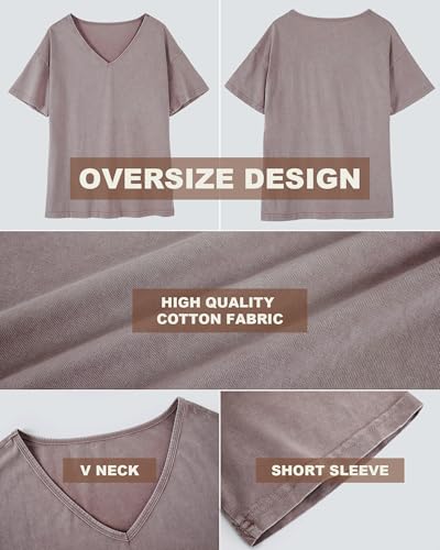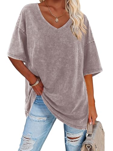 Flowyair Womens Oversized T Shirts Summer Loose Fit Cotton Short Sleeve Basic Tees Casual V Neck Boyfriend Tunic Tops