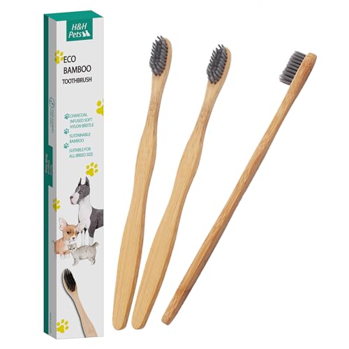 H&H Pets Bamboo Toothbrush Set for Dogs and Cats – Ultra Soft Bristles & Biodegradable Wooden Toothbrush, Puppy Supplies, Dog Dental Set, Eco-Friendly Pet Supplies (Large; 3-Count Pack)