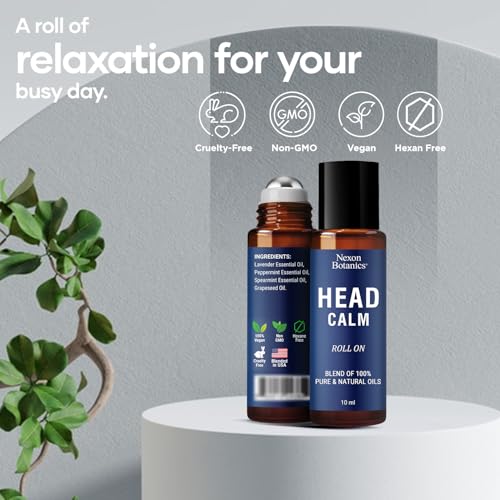 Head Calm Essential Oil Roll-On 10 ml – Soothing Blend of Pure & Natural Essential Oils – Roller Ball for Migraine & Headache Relief – Nexon Botanics