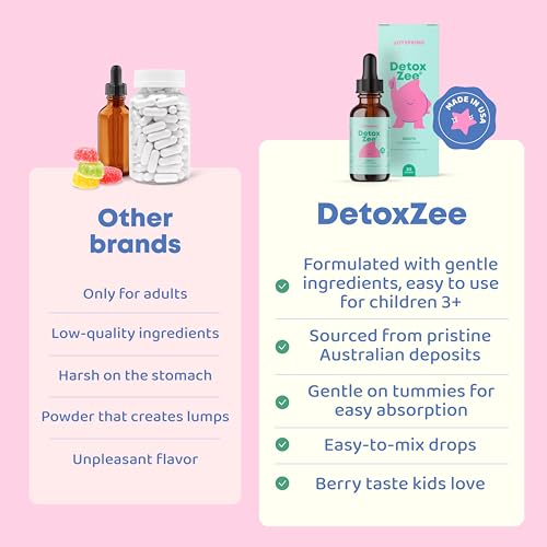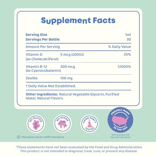 JoySpring DetoxZee Zeolite Drops for Kids – Clinoptilolite with Vitamin D3 & Cyanocobalamin Vitamin B12 – Natural Berry Flavor Liquid | 30 Servings