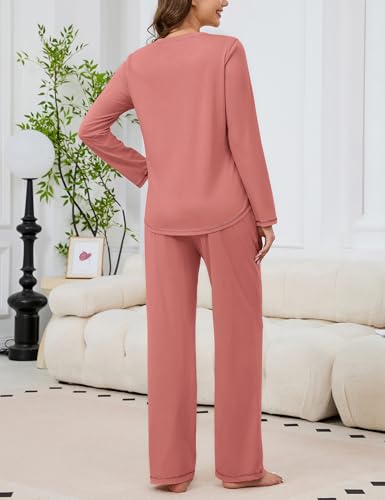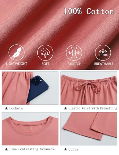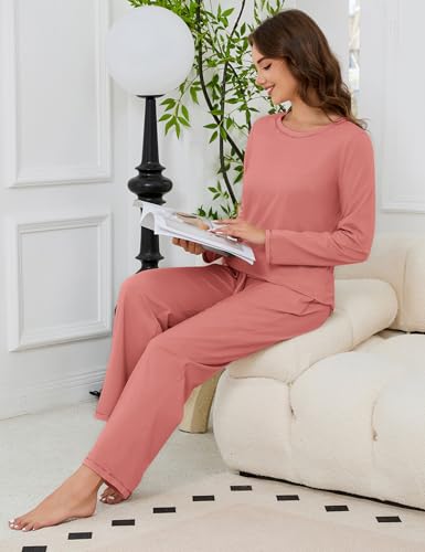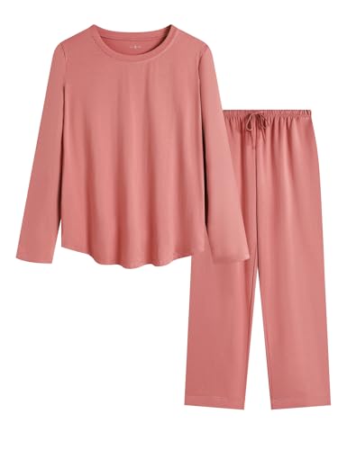KCW Womens Pajamas Sets 100% Cotton 2 Piece Lounge Set Long Sleeve Tops and Pants Soft Pjs Sleepwear with Pockets