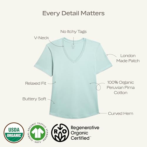 MON CHOU Women’s Premium Organic Pima Cotton V-Neck T-Shirt – Soft, Sustainable, Short Sleeve Relaxed Fit Everyday Tee