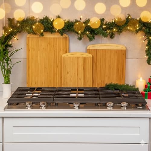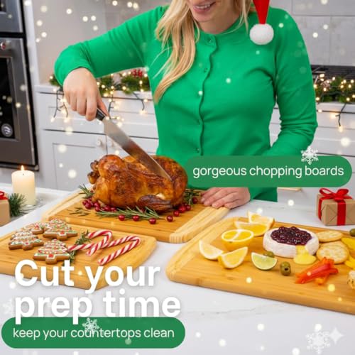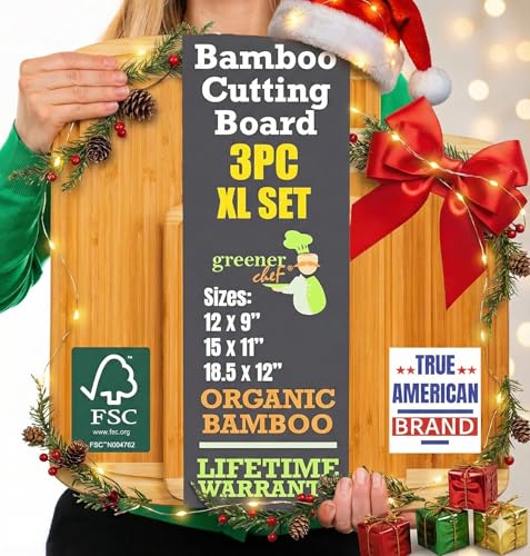 Organic Bamboo Cutting Boards for Kitchen Set of 3 with Lifetime Replacements – Premium Extra Large Wood Chopping Boards with Juice Grooves for Carving & Serving, Non-Toxic & Durable by Greener Chef