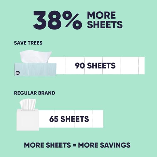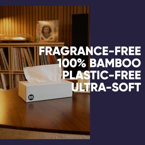 Save Trees Bamboo Facial Tissues – 4 Boxes of Eco-Friendly, 3-Ply Hypoallergenic Tissues, 90 Sheets per Box, FSC Certified, Plastic-Free Packaging, Soft & Gentle for Home Use