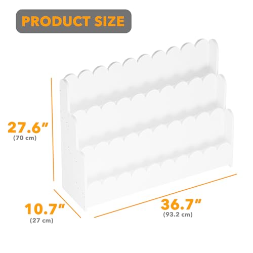 3-TIER MONTESSORI BOOKSHELF – Transform any nursery or playroom with this scalloped book shelf, doubling as a baby bookshelf and toy storage; Its compact size fits into toddler rooms or kids bookcases; SIZE: 29.6″W x 10.7″D x 27.6″H