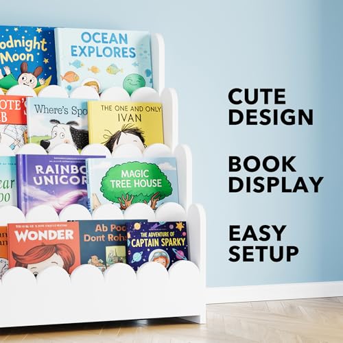 STURDY CONSTRUCTION – Made of durable wood, this scalloped book shelf ensures safety and durability; It keeps your book organizer or childrens bookshelf clutter-free while adding charm to any room bookshelf setup