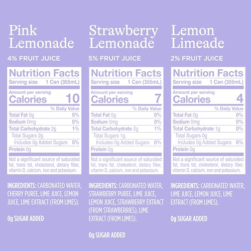 Pack Includes 20 sparkling water cans (12 fluid ounces per can): Lemon Limeade (7 cans), Pink Lemonade (7 cans), Strawberry Lemonade (6 cans