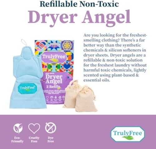 Truly Free Dryer Angel – Natural Dryer Sheet Alternative, Non-Toxic Reusable Fabric Softener Sheets and Scent Booster, Safe for Babies and Sensitive Skin, Laundry Room Essentials – 2 Packs + 2 Refills